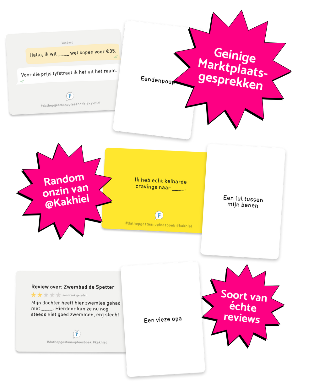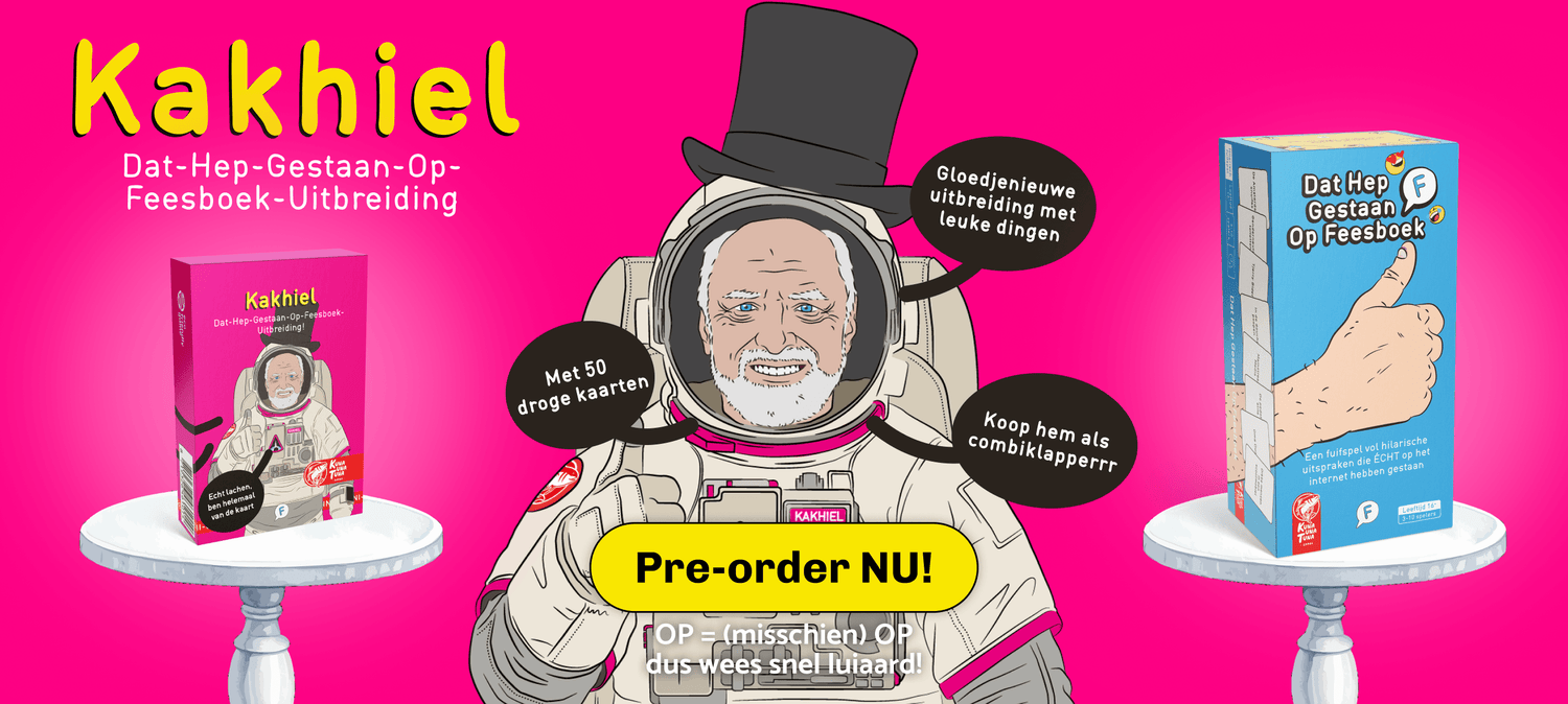 Stel je voor, Nederlandse internethumor in een snel en hilarisch kaartspel. Dat is Dat Hep Gestaan Op Feesboek, zie het als de Nederlandse Cards Against Humanity maar dan nóg beter.